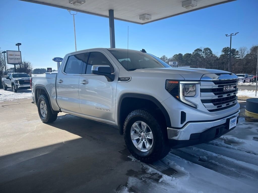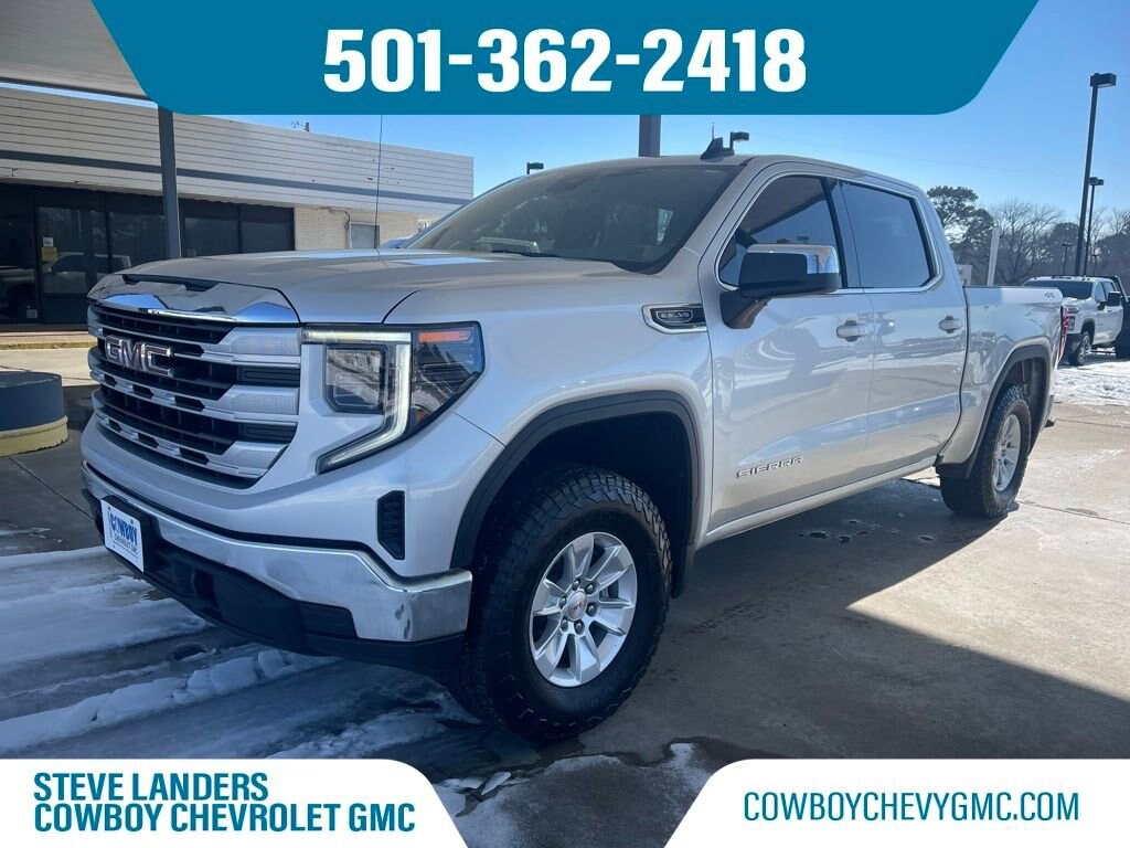 CARFAX One-Owner. Quicksilver Metallic 2022 GMC Sierra 1500 4D Crew Cab SLE EcoTec3 5.3L V8 10-Speed Automatic 4WD 14/19 City/Highway MPG